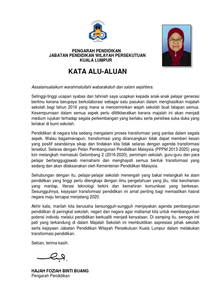Kata Aluan Pengarah Untuk Majalah Sekolah 2016 Sek Men Pdf Pdf