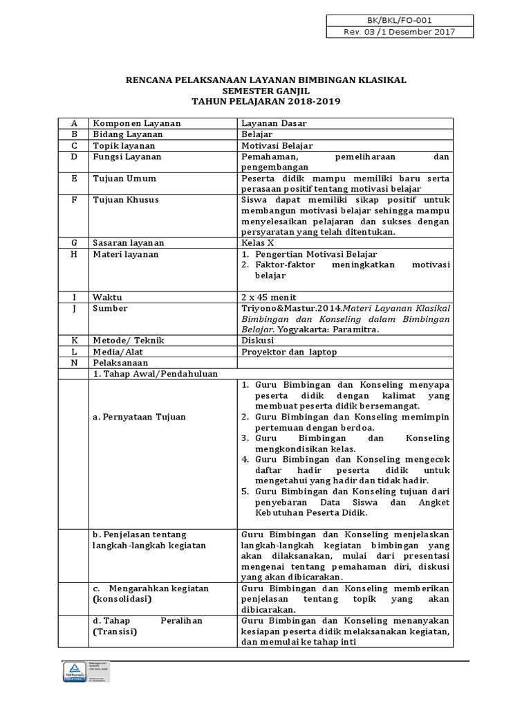 Rpl Bimbingan Klasikal Motivasi Belajar Pdf